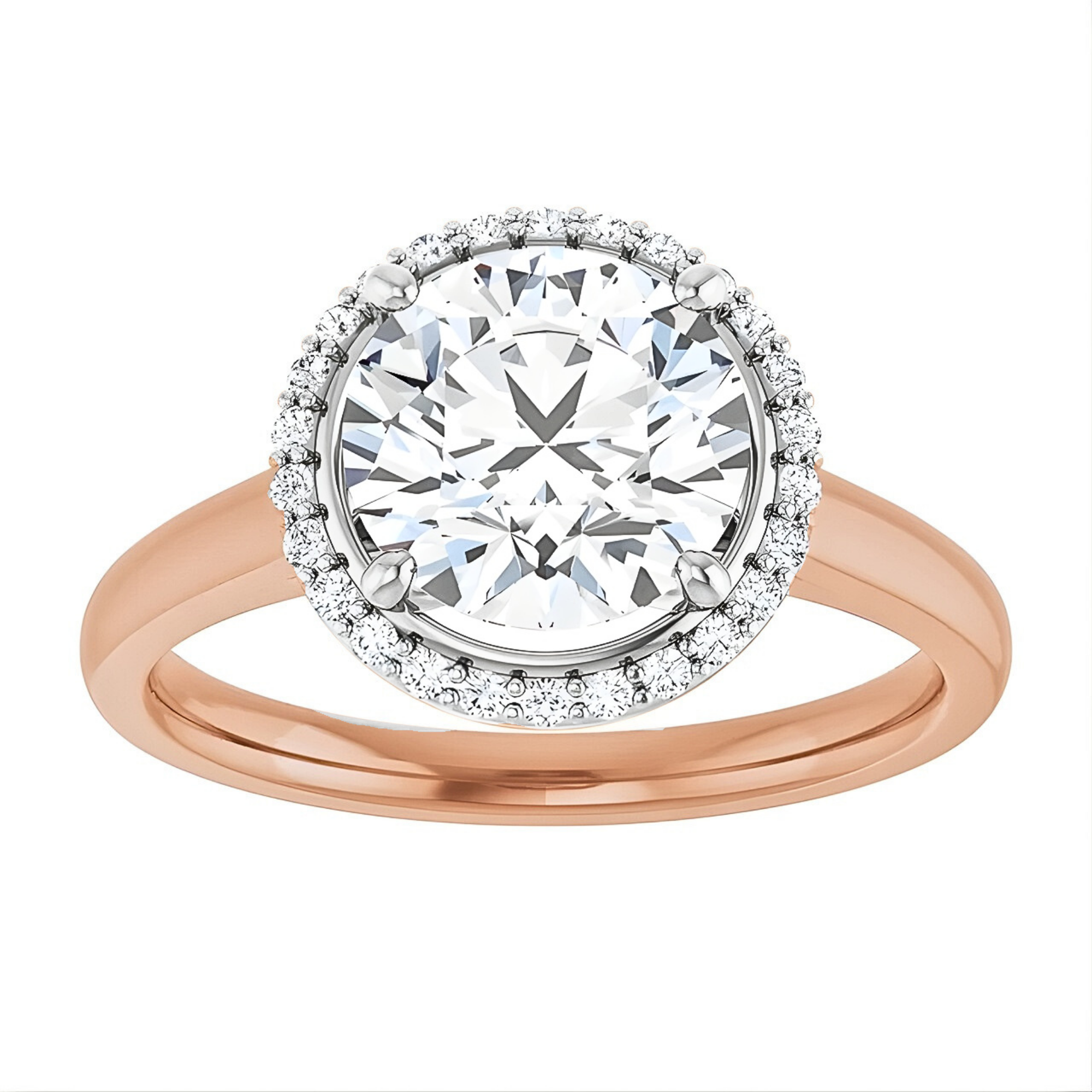 The Audrey engagement ring setting offers a classic and elegant design with diamonds surrounding your chosen center stone for added sparkle. The high polish band adds a touch of shine while its low profile ensures a comfortable fit.