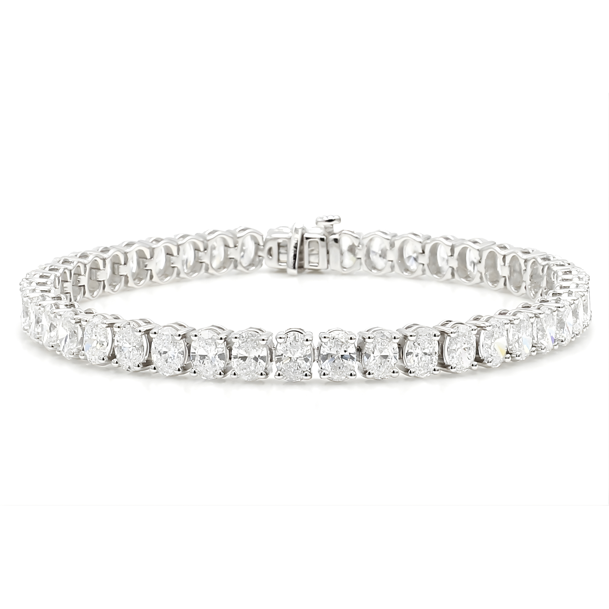 This oval lab-grown diamond tennis bracelet showcases a continuous line of brilliantly cut diamonds in a timeless design. The elegant oval cut maximizes sparkle and creates a graceful look on the wrist, making it an ideal choice for both special occasions and everyday wear.