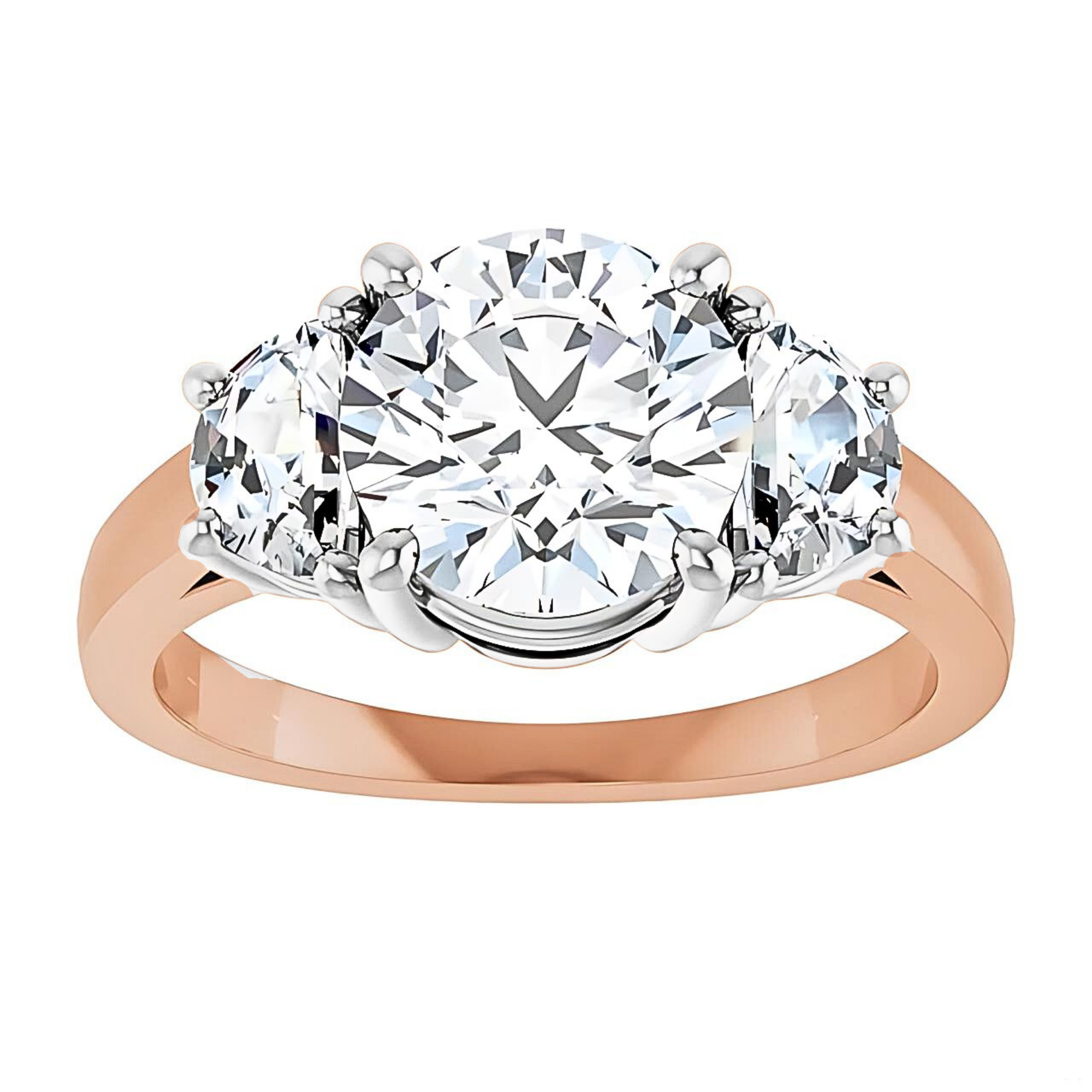 The Eleanor Three Stone Setting is the perfect choice for a one-of-a-kind engagement ring. Its polished band is adorned with half moon diamond accent stones, adding a touch of elegance to the classic three stone setting. This style sits low on the finger, ensuring a comfortable fit, and making it perfect for everyday wear.