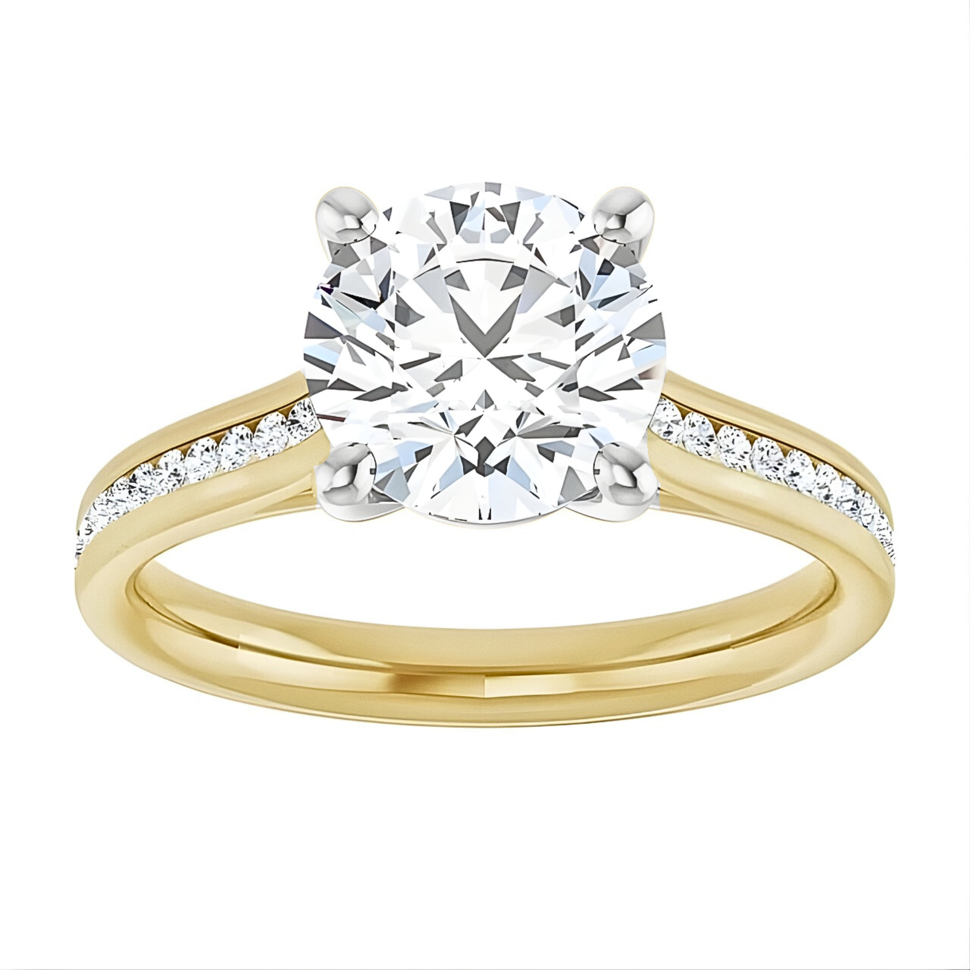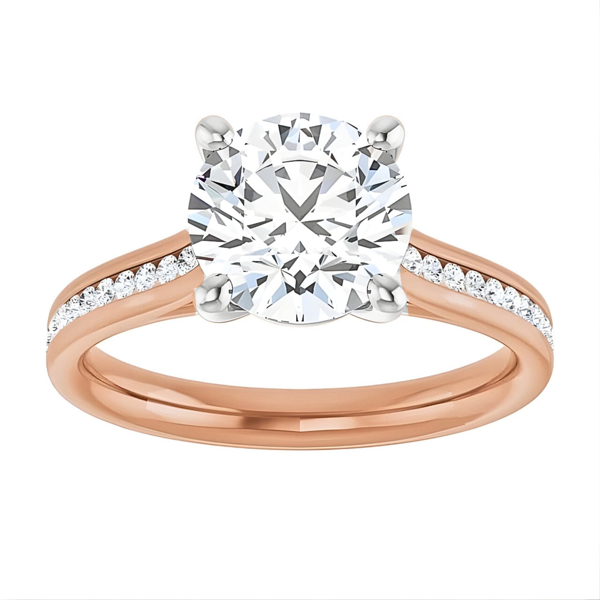 This timeless setting features securely-set channel set diamonds in the band with a classic cathedral design to perfectly complement your chosen center stone.