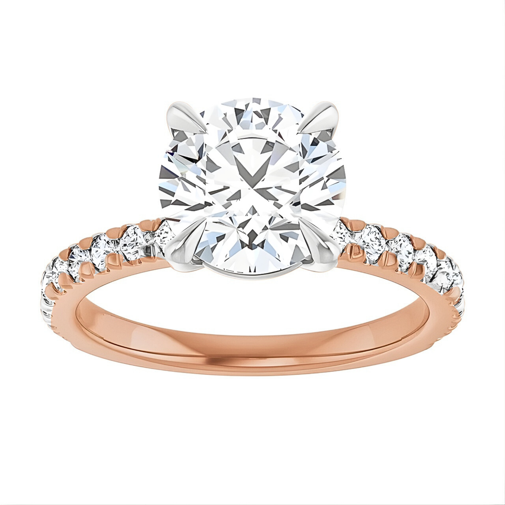 Elegant and sophisticated, this setting features a delicate French pave design. This style sits flush with a straight wedding ring to ensure a seamless ring stack.