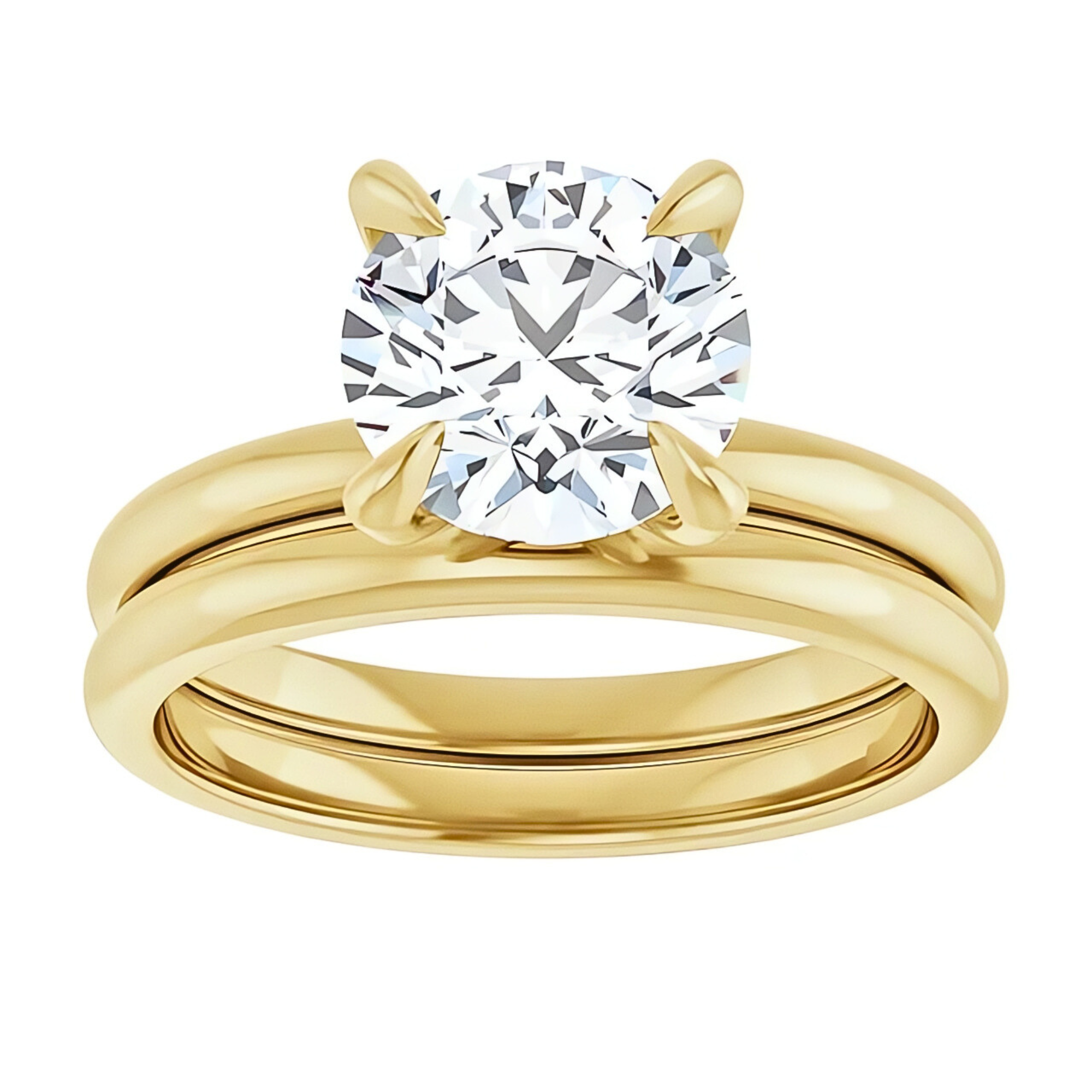 Our best-selling solitaire setting features a classic design and secure claw prongs to beautifully showcase your chosen center stone. This style sits flush with a straight wedding ring to ensure a seamless ring stack.