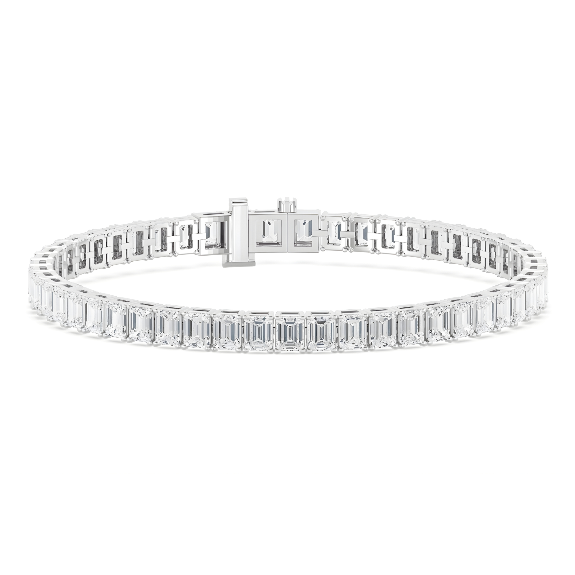 The Tassie Emerald Cut Lab Grown Diamond Tennis Bracelet features brilliant lab-grown diamonds in elegant emerald cuts, strung together in a continuous line of radiant sparkle. Perfect for adding refined sophistication to any occasion, this timeless piece combines luxury with sustainable craftsmanship.