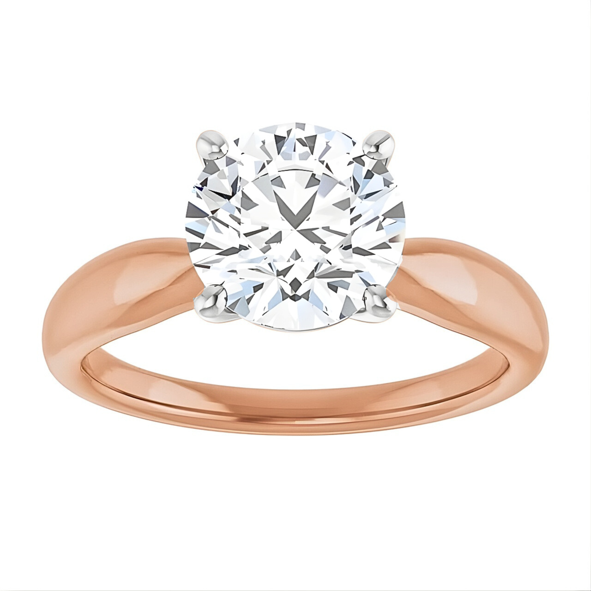 A twist on a classic solitaire, this unique wide band setting gently tapers to draw the eye towards the center stone, creating a stunning focal point. The low set center stone allows for the most comfortable fit with added security. Let this elegant setting showcase the brilliance of your chosen center stone in a design.